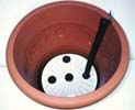 The MPS Secret Soaker “tanks” are placed permanently in the planters or gardens and covered with the correct form of potting soil mix to ensure proper capillary action. The trees, bushes or flowers are then planted, leaving a gap of about 10 cm (4”) between the top of the “tank” and the bottom of the plant's roots. Nutrients can be fed into the water, requiring only 25% of the nutrients normally used. As the water level in the “tanks” goes down, the oxygen is drawn down to the plant’s roots.